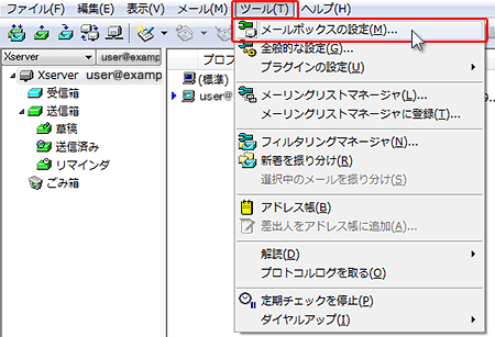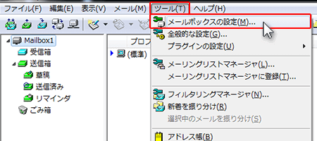 画面下部の「プロファイル(R)」にて、設定を確認したいメールアドレスのプロファイルに変更します。