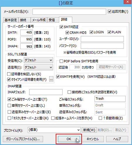 「詳細」のタブを選択し、下記内容を参考に情報を入力し、「OK」をクリックしてください。