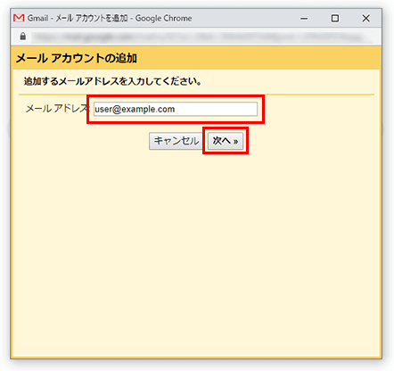 設定するメールアドレスを入力し、【次へ】をクリックしてください。