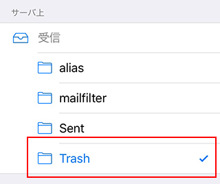※Trashが一覧に表示されていない場合は、先にメールの送受信テストを行ってください。