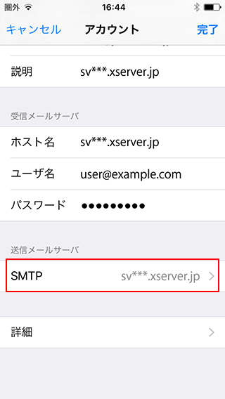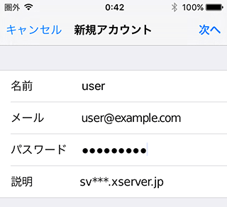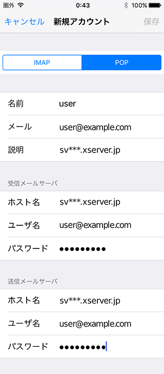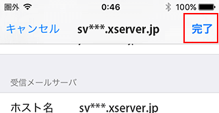 上記メールサーバー情報を入力後、「保存」をタップしてください。