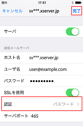 「パスワード」に設定し、右上の「完了」をタップしてください。