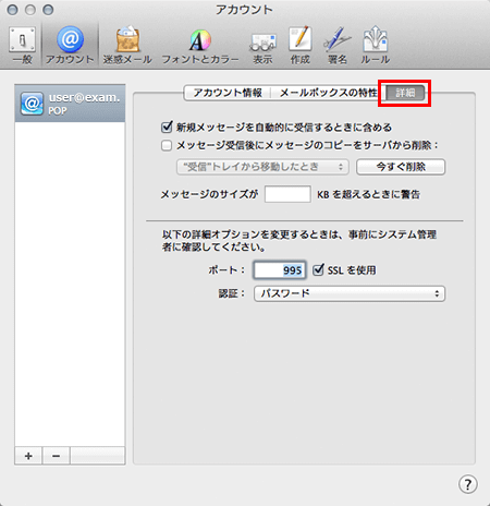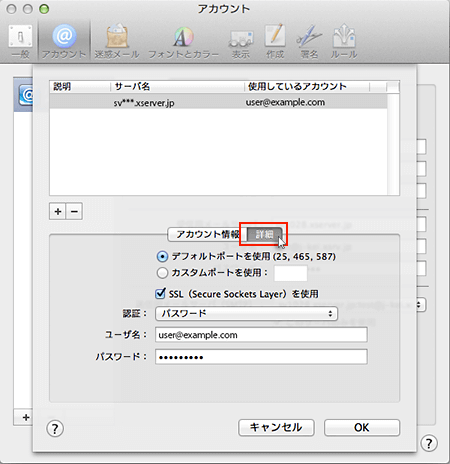 メールアカウントに利用しているメールサーバを選択し、「詳細」をクリックします。