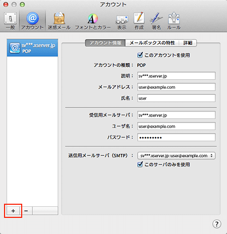「アカウント」をクリックし、画面左下の「+」を選択してください。