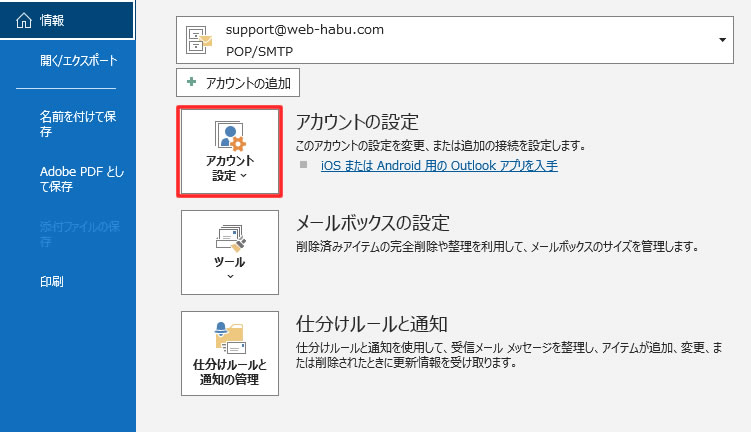 3. 「アカウントの設定」をクリック
