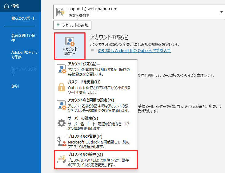 4. プロファイルの管理をクリック