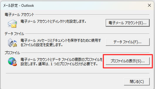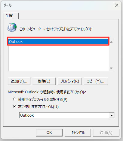 6. 該当のプロファイルである「Outlook」をダブルクリックします。