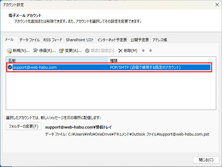 8. 対象のメールアカウント、ダブルクリック。