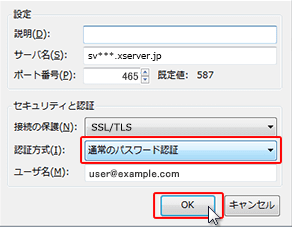 「認証方式(I)」の項目の「通常のパスワード認証」を選択し、「OK」をクリックします。