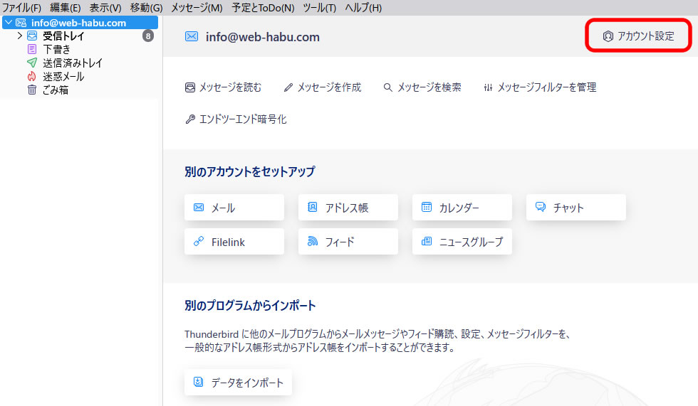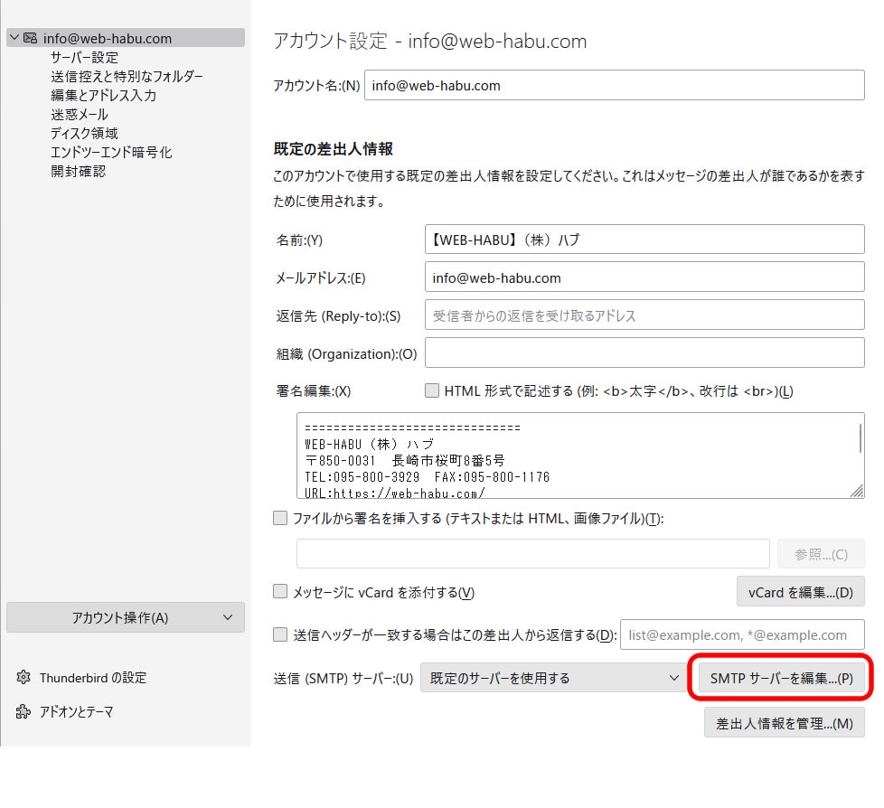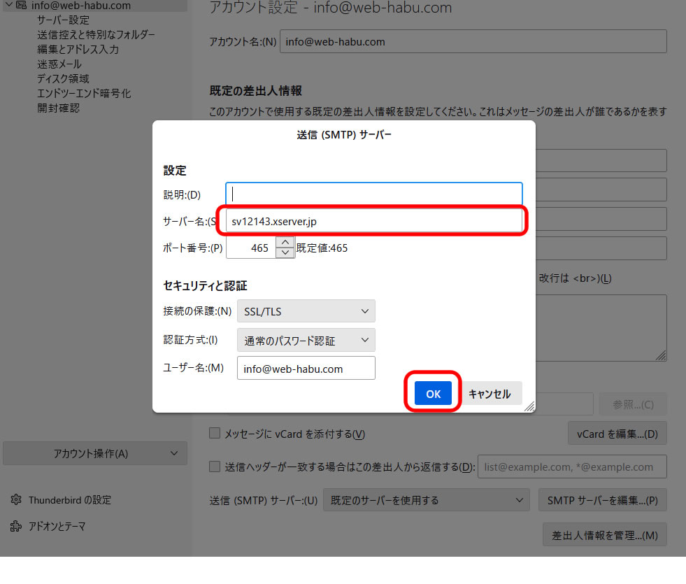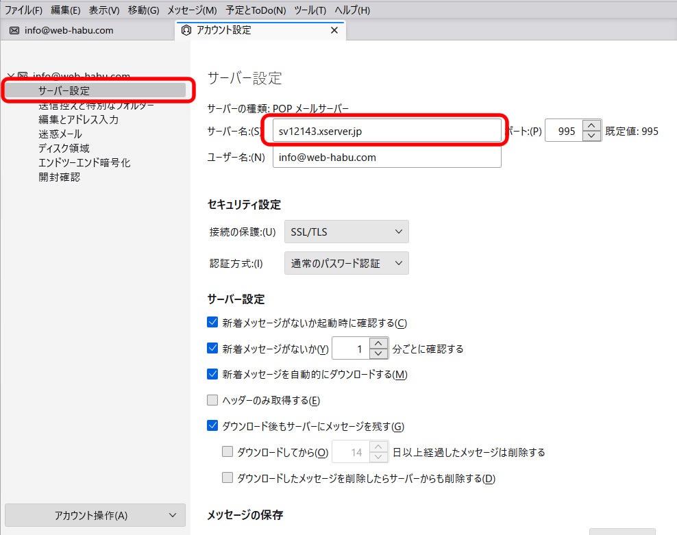 Thunderbirdでのサーバー設定変更