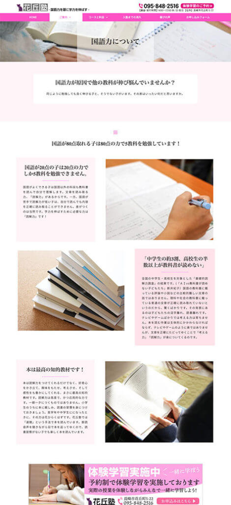 競合他社との違いを把握するためにヒヤリングを行い花丘塾様の強みをピックアップする作業から取り組みました。