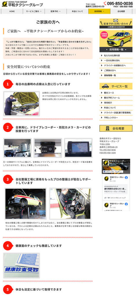 サイト制作をする目的が乗務員を確保と言うことで、乗務員募集の採用ページの強化をはじめ、indeedと連携した応募制作となりました。未経験の方大歓迎と言っておられたので、未経験の方の不安要素を払拭するコンテンツのご提案をいたしました。その他にも、長崎観光のご案内もされており各コースの詳細ページや車両紹介ページも設けました。
