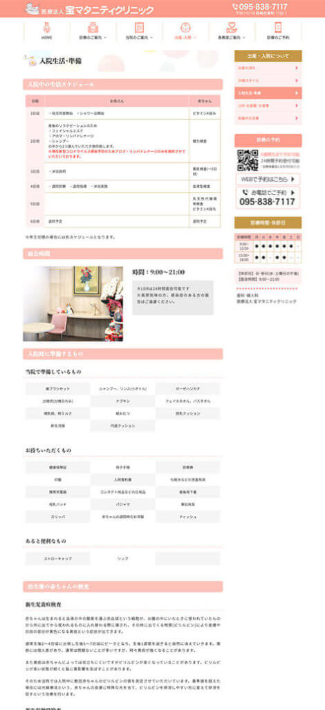 業種がマタニティクリニックということで女性ユーザーの閲覧が多いと思いサイトコンテンツも初産婦・経産婦にもわかる内容を入れ制作いたしました。